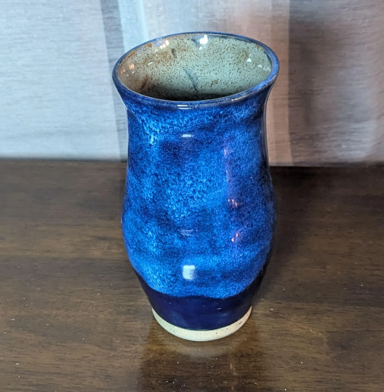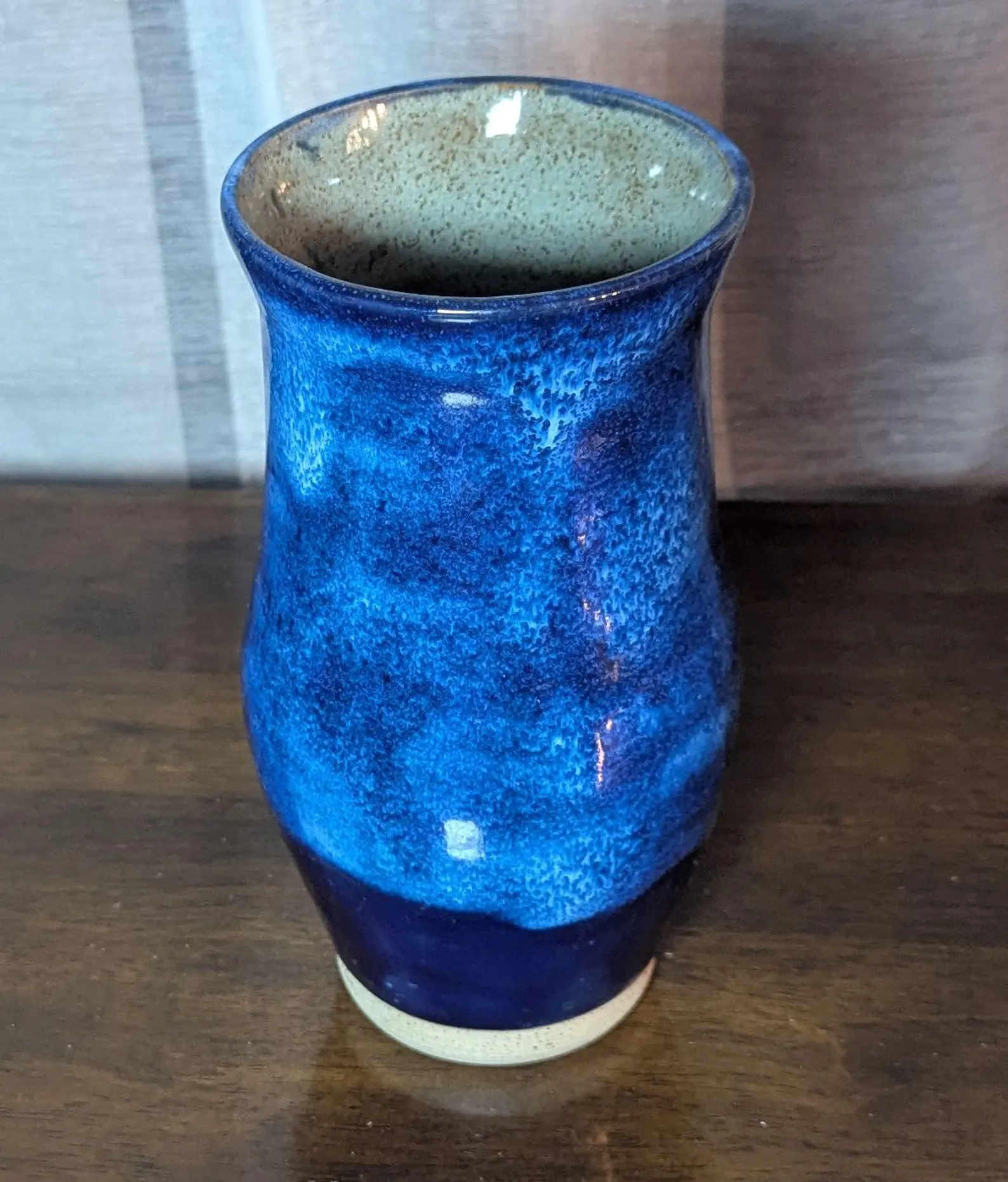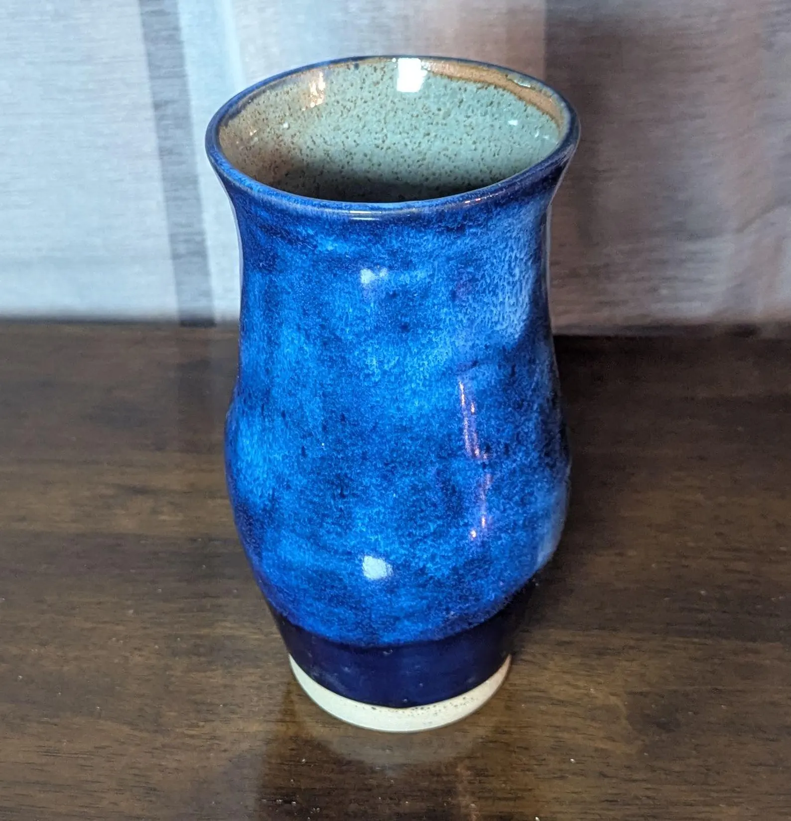 handmade vase. Tall blue thrown ceramic vase.