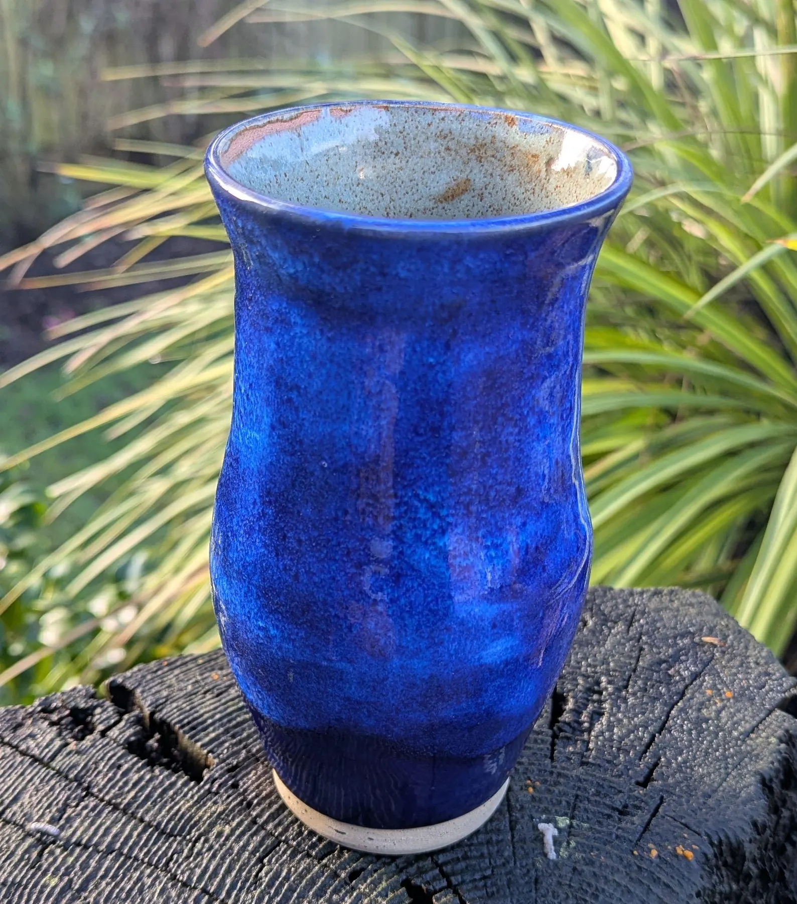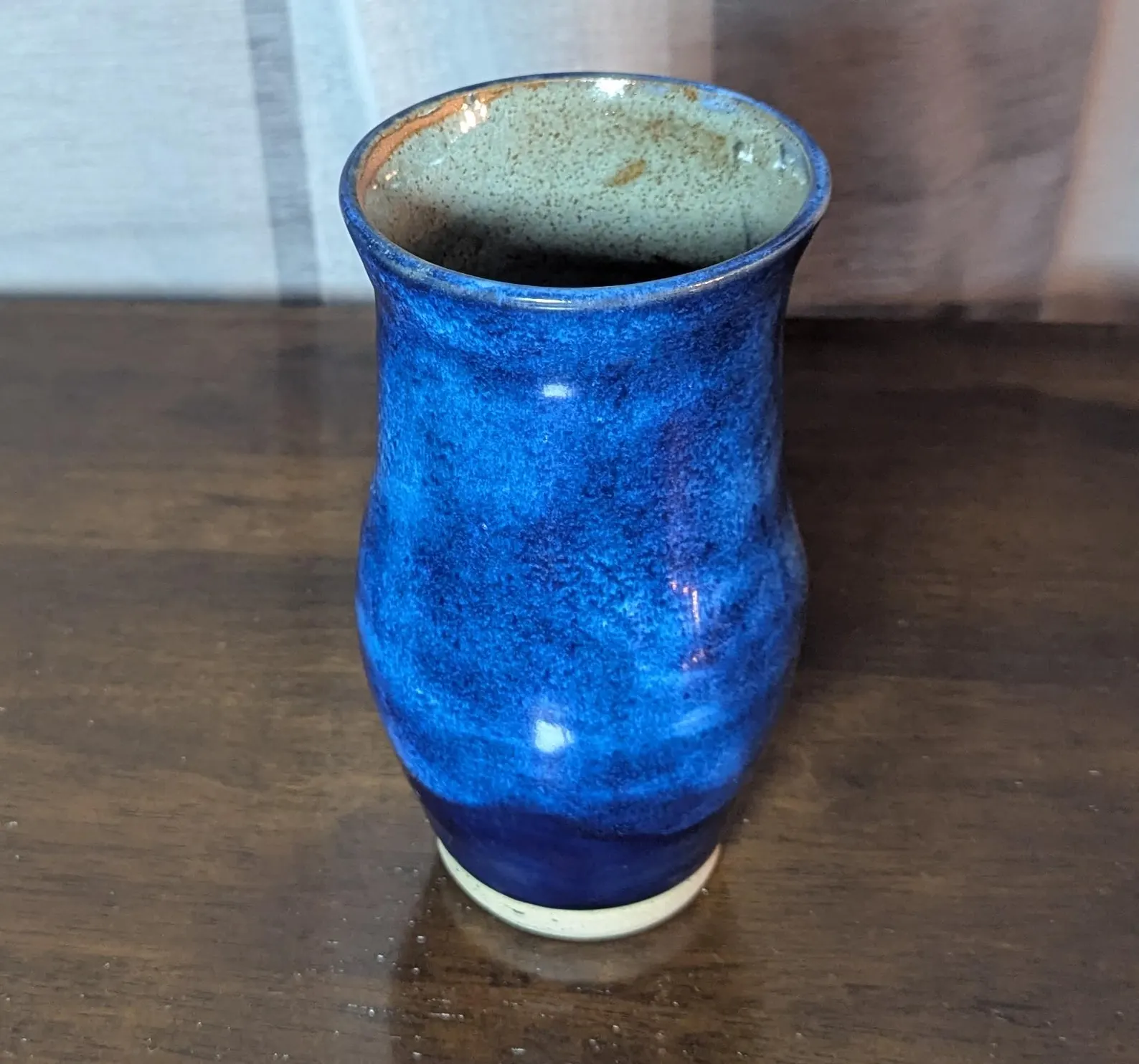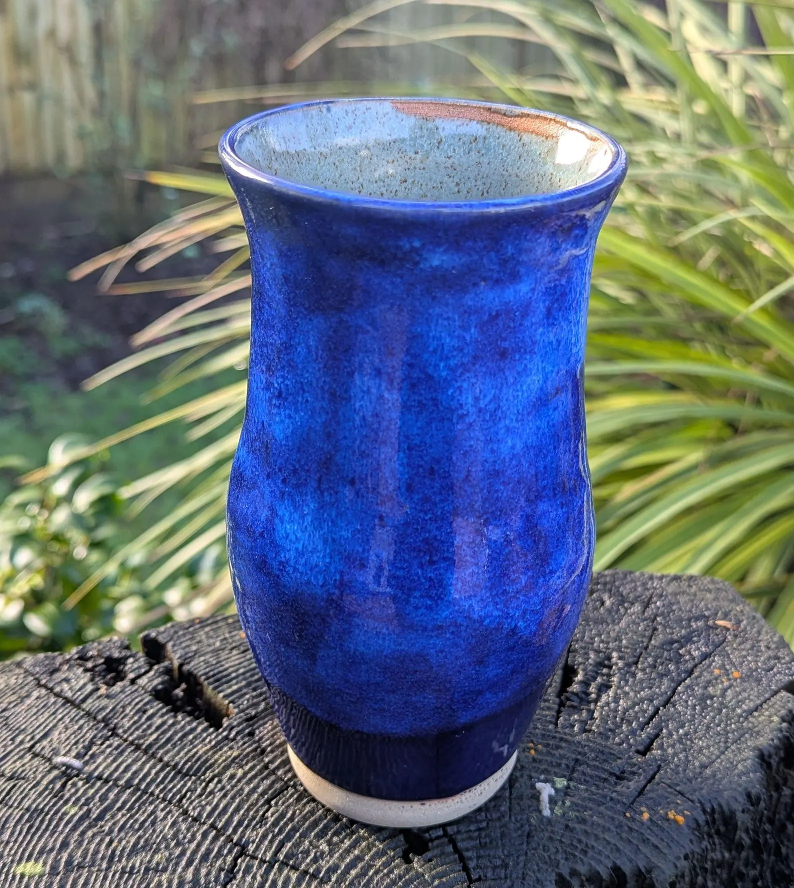 handmade vase. Tall blue thrown ceramic vase.