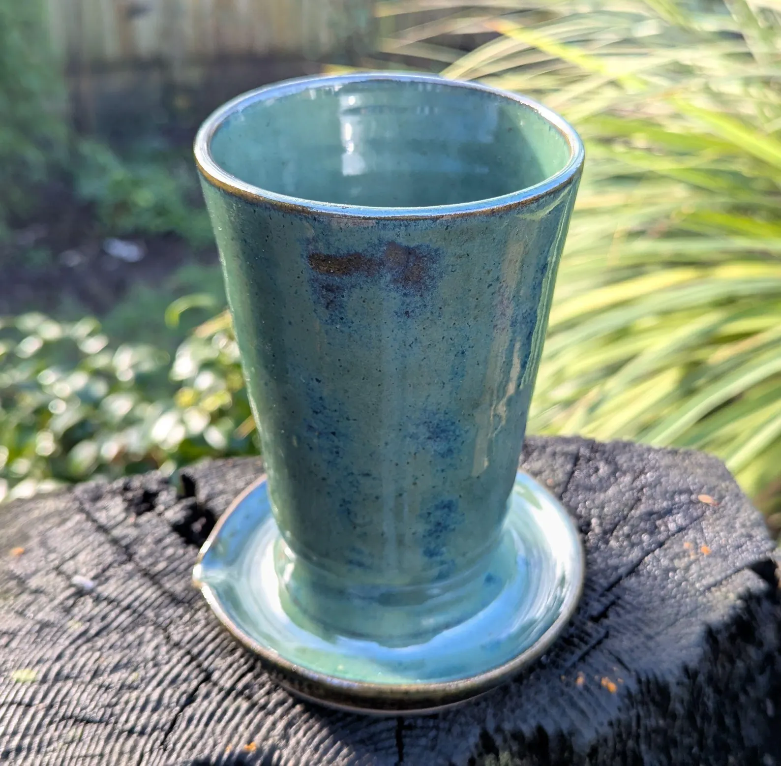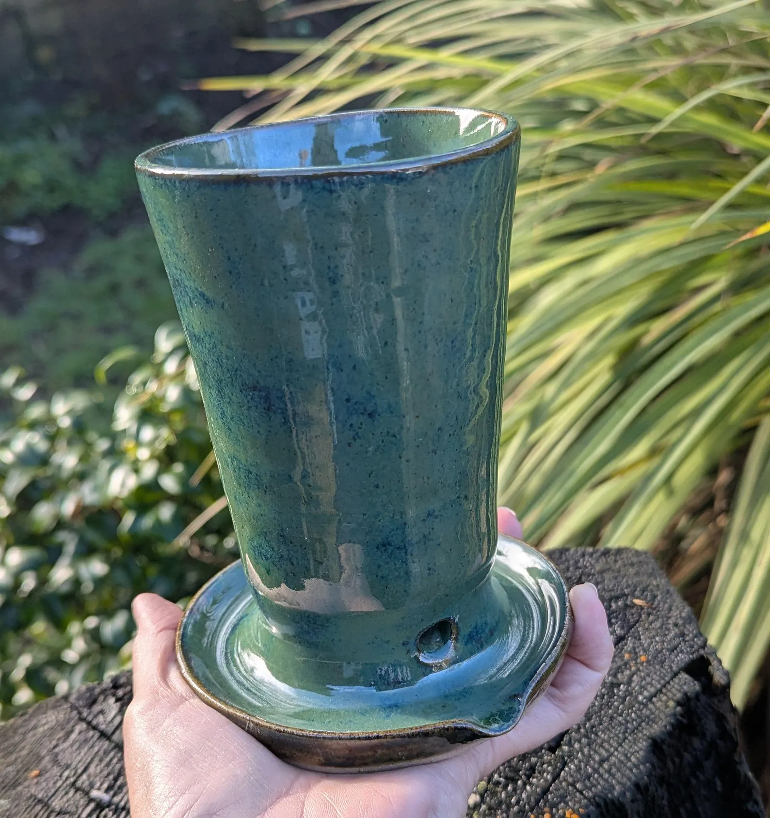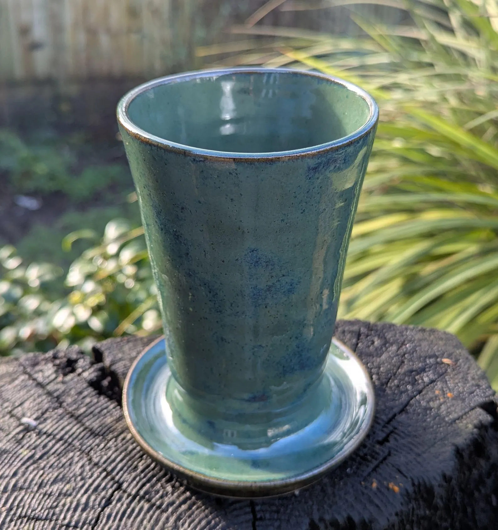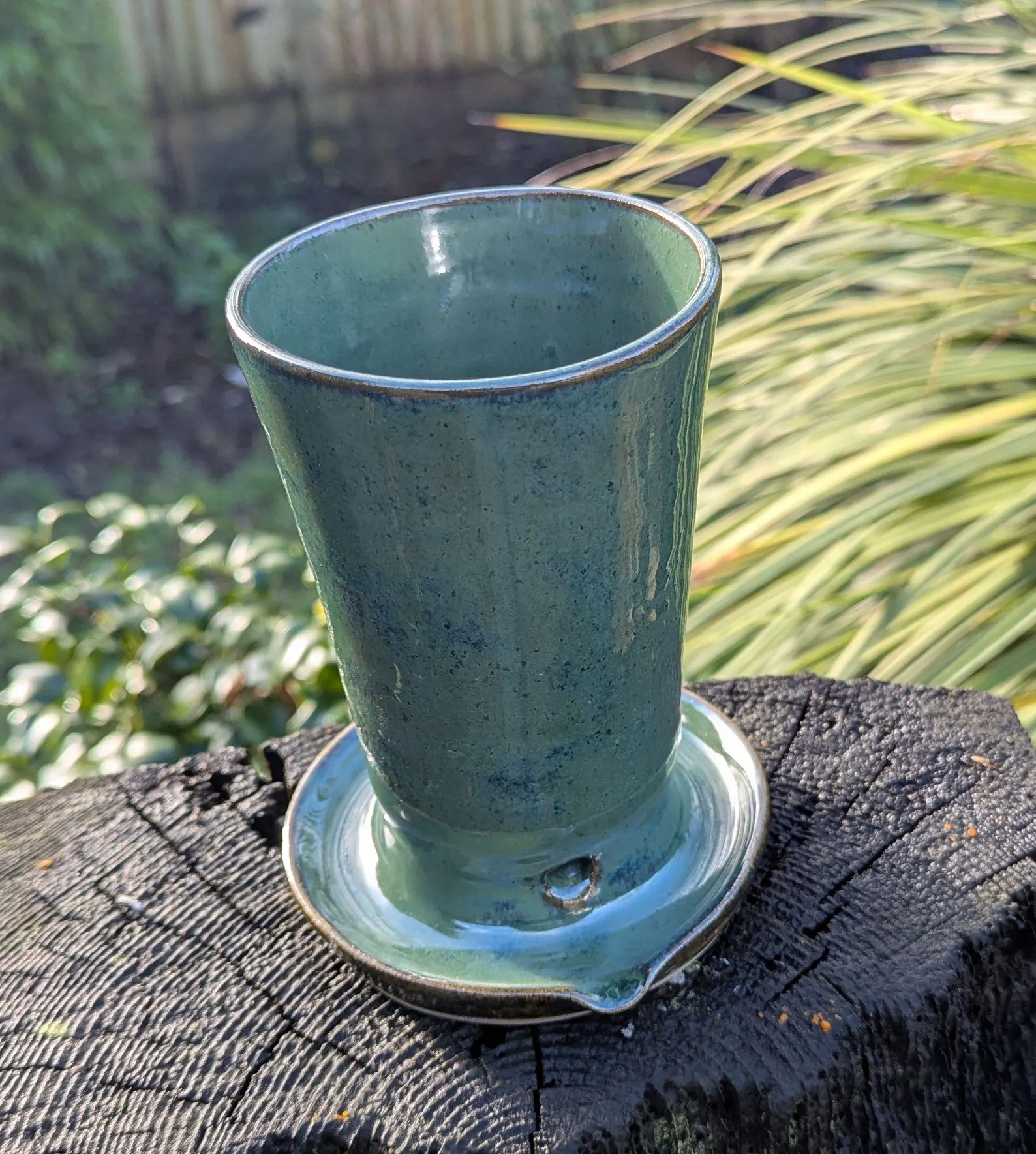 Thrown on the wheel and allowed to dry. After drying I then apply the glaze in this lovely dark green glaze, and then fired to approx 1180deg c