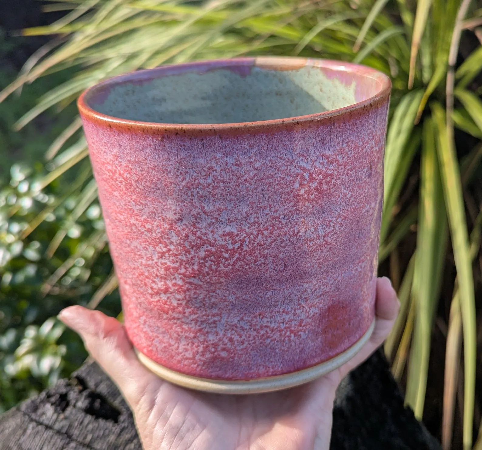 Gorgeous pink ceramic planter, thrown ceramic plant pot/ planter- no holes so this is ideal as a holder for a plastic plantpot, or succulent plant.