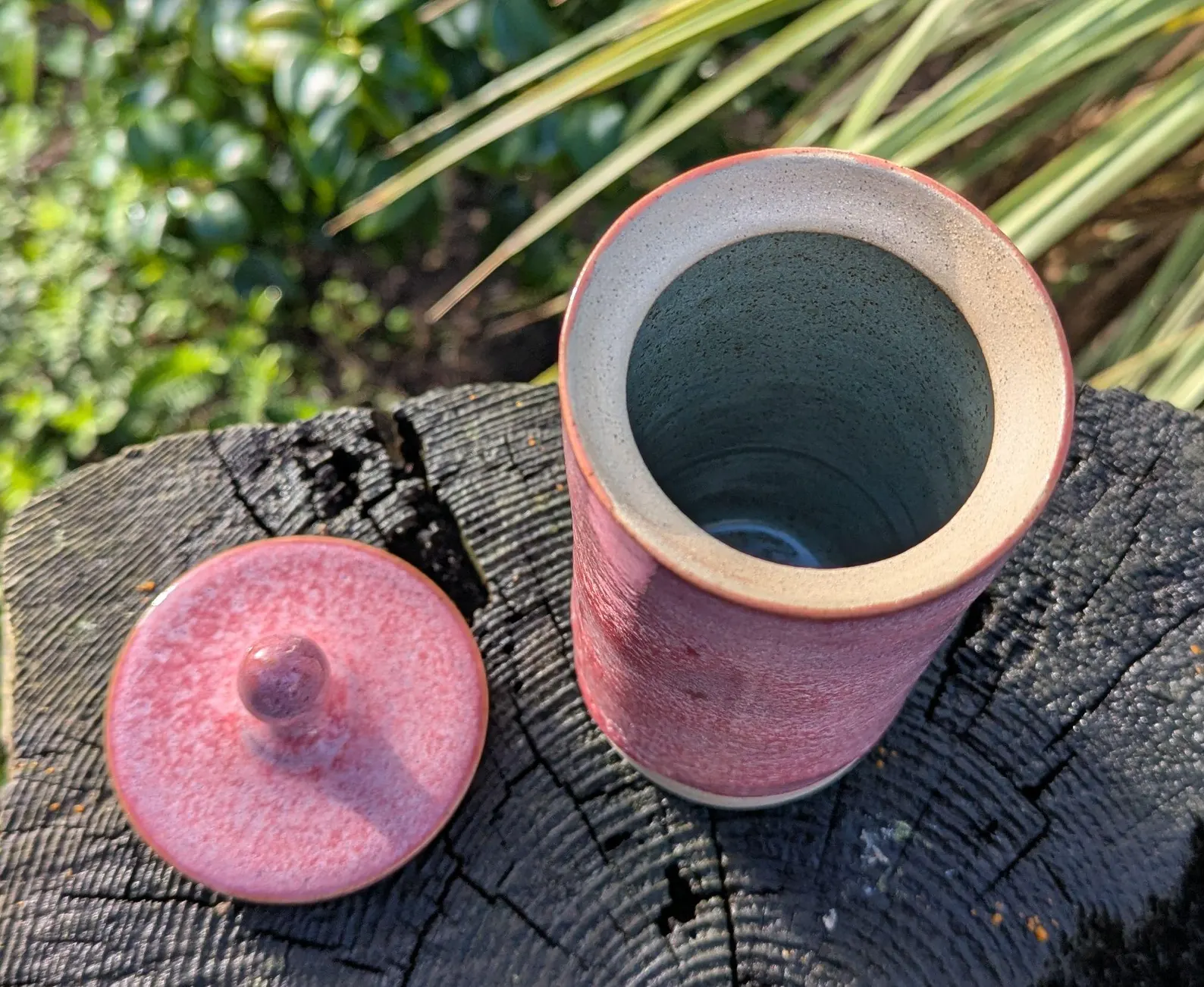 Thrown on the wheel. Holes allow the air to circulate. Once dry