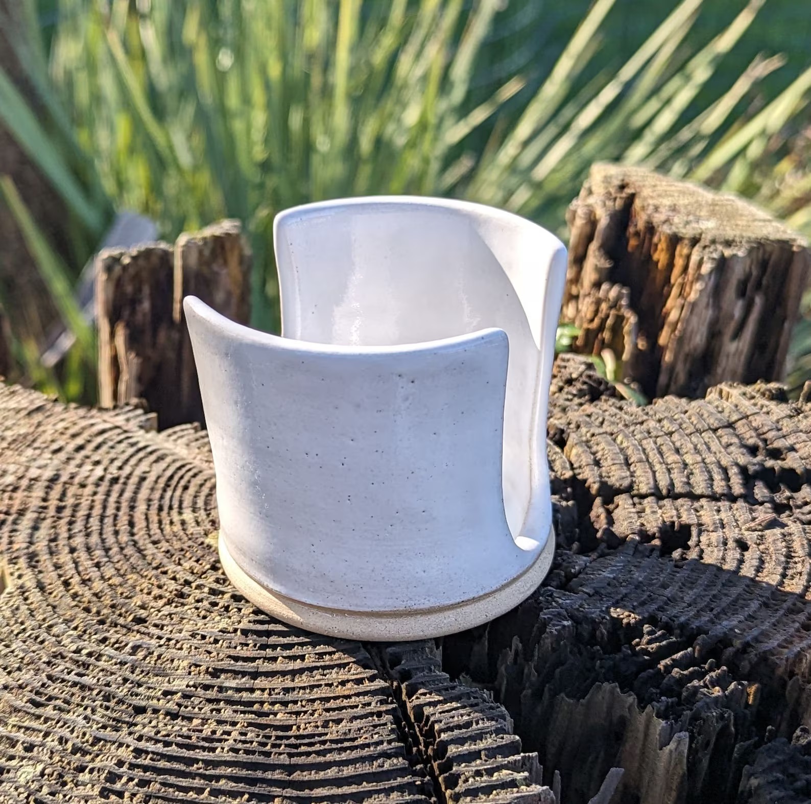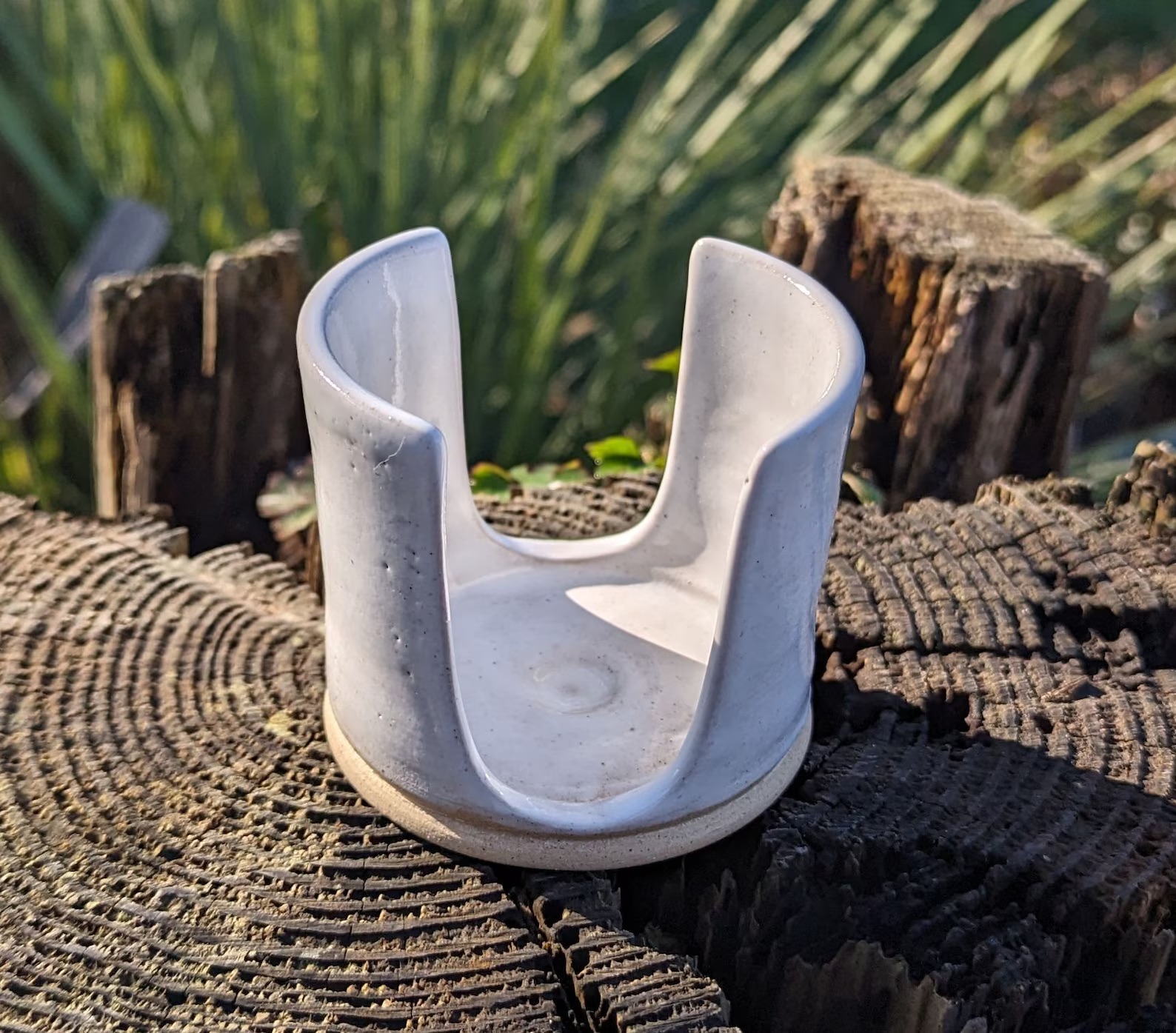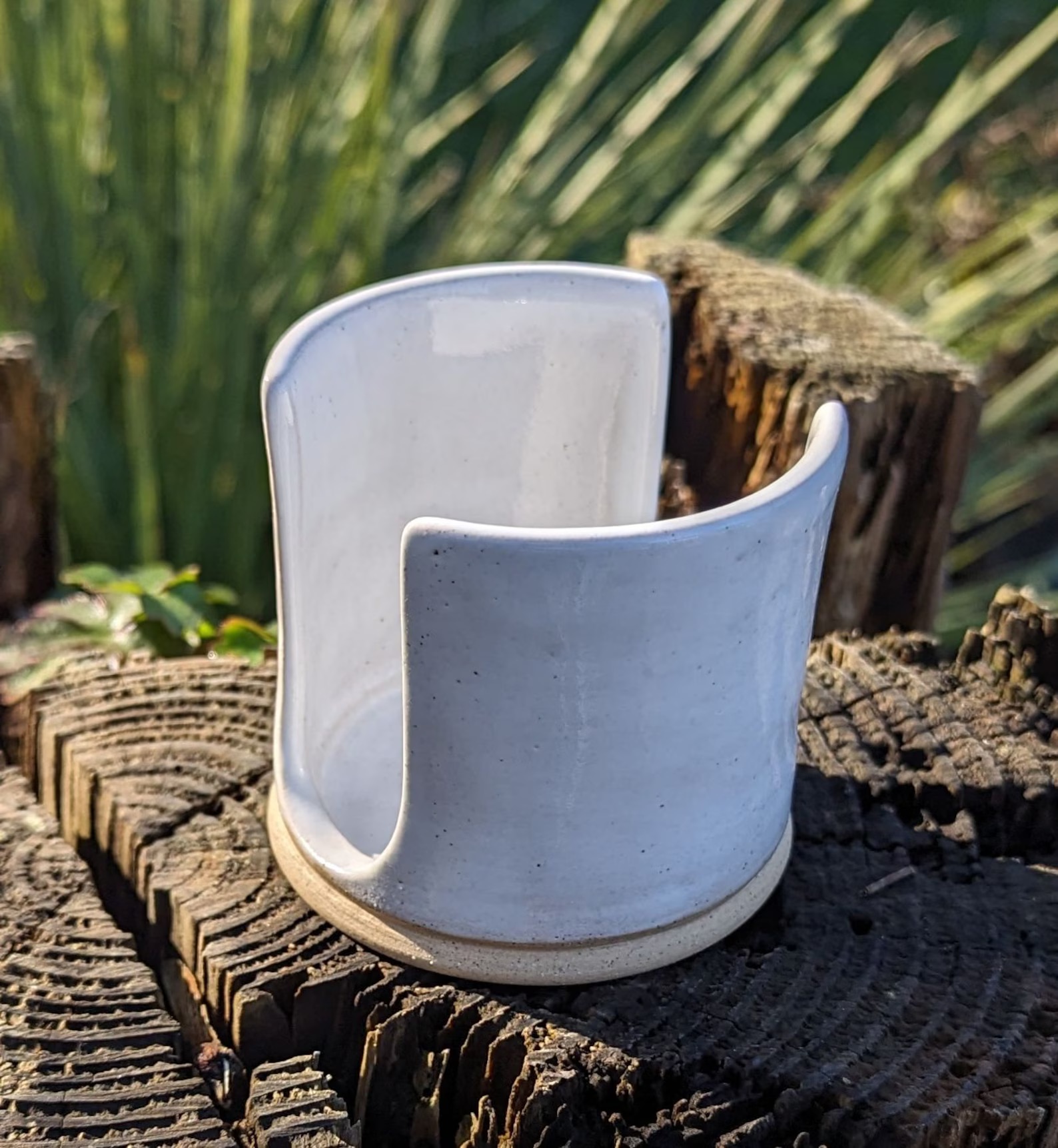 White ceramic sponge holder, ceramic sponge dish, cotton pad holder.